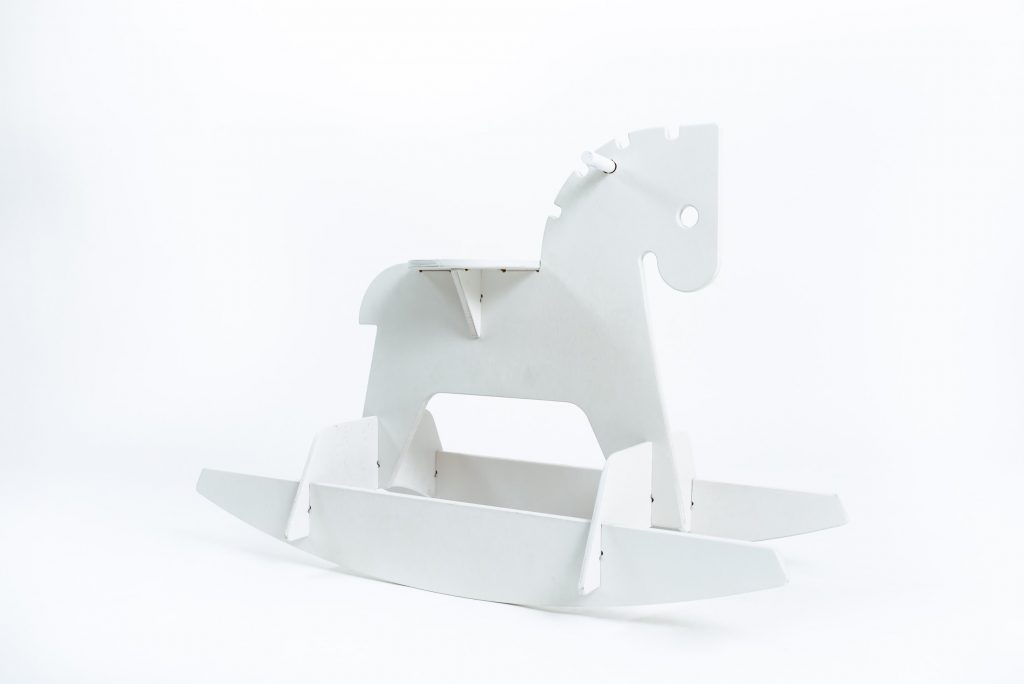 The Cradle & Rocking Horse Set consists of a multifunctional crib and a rocking horse that can also be used on the cradle.